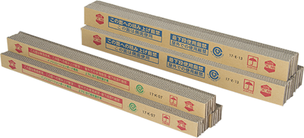 紙製なので、軽量で製品に合わせた寸法設計※も容易です。「りん木」使用時には、木製と違って高さや強度が均一に揃っていますので、商品が歪むことがありません。また、断面がやわらかくなっているので、商品を傷つけにくいので安心です。
