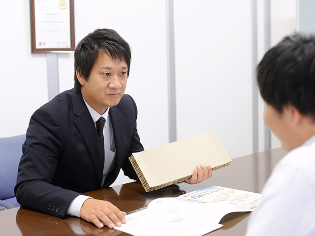 近年では環境問題に注目が集まり、少ない資源を活用していくことが求められています。ネットショッピングが普及で、資源を消費する梱包材だけでなく、運送費・人件費の問題も出てきています。今後、紙製梱包材の中でも、薄くて軽量・トン単位の重量にも耐える強度、そして100%リサイクルが可能なエコボードは、必ず需要が上がると確信しています。実際に、ここ10年でもエコボードは着実に拡がっている実感がありますし、こんなに胸を張って売れる商品は他にはないと思います。