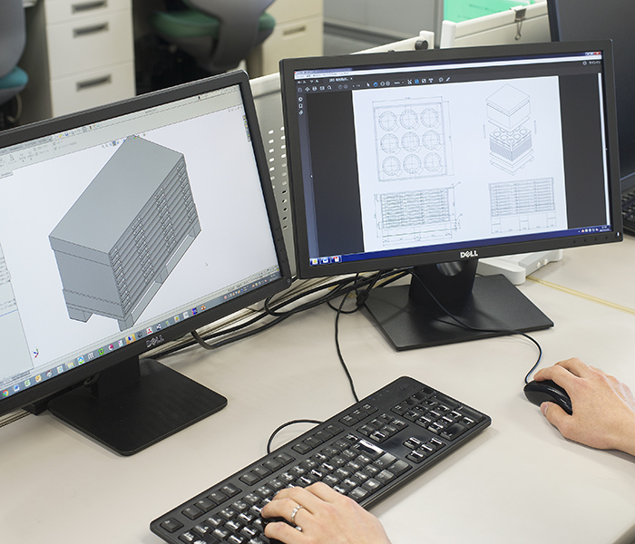エコボードはまだ世の中に浸透していない商品です。そのため、強度などは本当に大丈夫なのか不信感をいだかれるお客様もいらっしゃいます。さらに、エコボードは木製パレットや樹脂パレットのように決まりきった形だけではなく、ニーズ、荷重条件に合わせた形に組み立てることができるため、強度が形によって大きく変わります。なので、私たちはお客様にエコボードのご注文いただく前に、技術部でお客様の仕様に基づいて強度を計算しています。パレットをフォークリフトで運んだ際の爪の内側、外側の曲げ強度など運送に必要な強度を中心に数値として算出。強度が弊社の安全規格を満たしているか確認、検証したものをお客様に納めさせていただいております。エコボードはまだ新しい商品だからこそ、お客様に信頼してご注文していただけるために強度を徹底し、お客様に納得してご注文いただけるように全力を尽くさせていただいています。